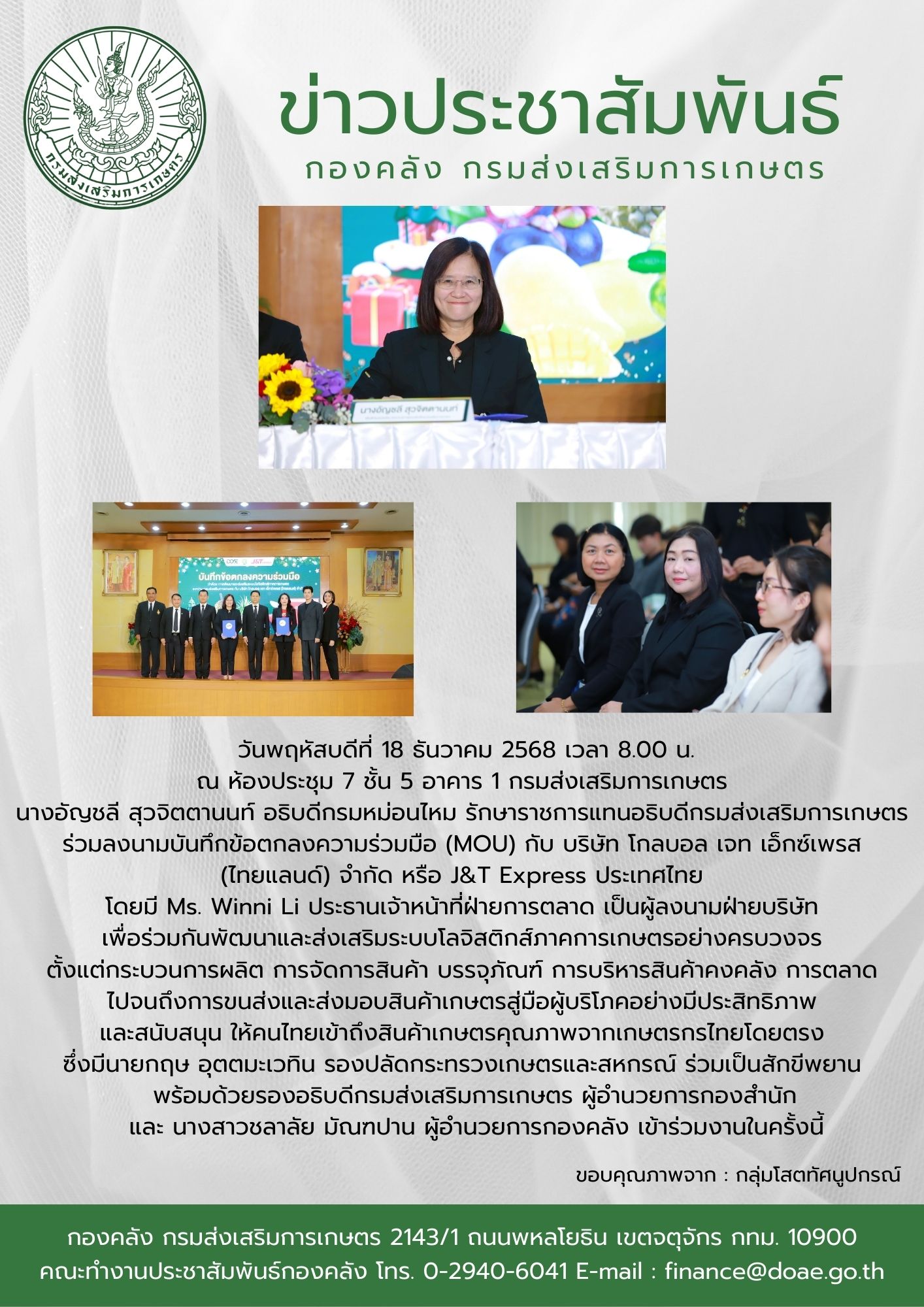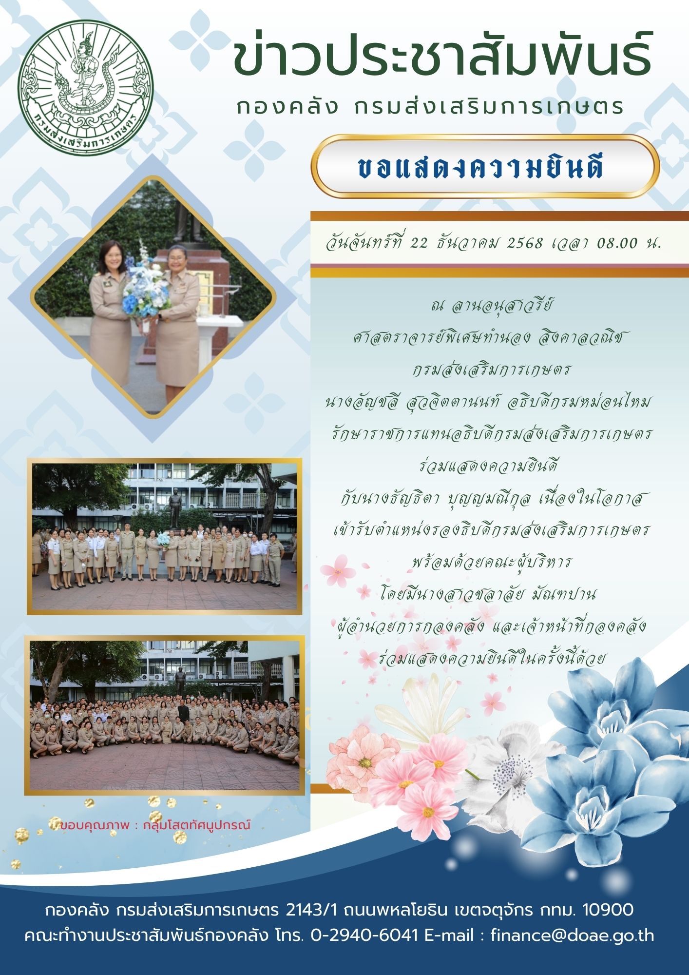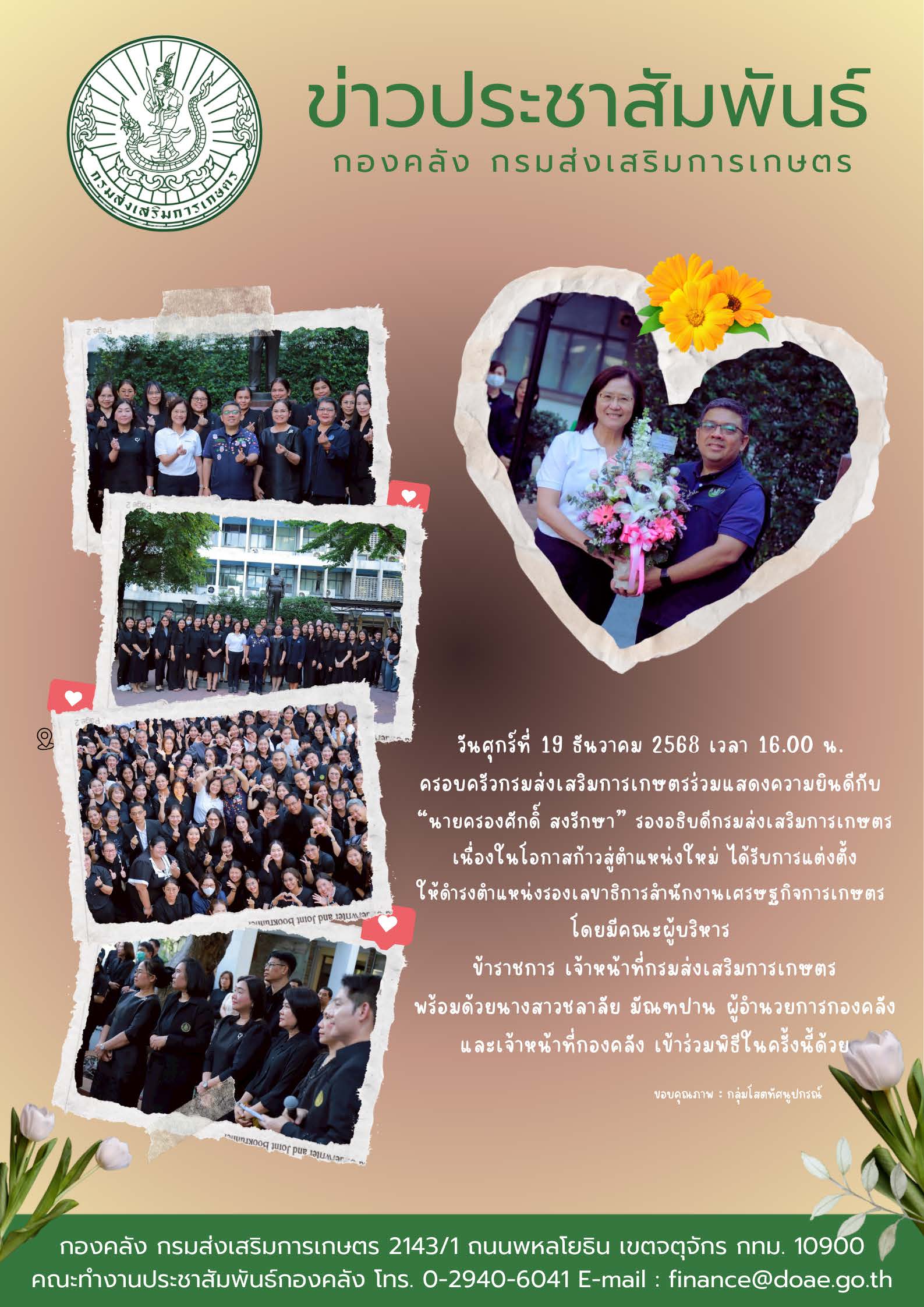กองคลังแจ้งเงินจัดสรรงบประมาณรายจ่ายประจำปีงบประมาณ พ.ศ. 2569 ในระบบ New GFMIS Thai ครั้งที่ 200 ให้จังหวัดระยอง เพื่อเป็นค่าตอบแทนพนักงานราชการ (เพิ่มเติม) รายละเอียดตามหนังสือกรมส่งเสริมการเกษตร ที่ กษ 1004/13464 ลงวันที่ 30 ธันวาคม 25686 มกราคม 2026