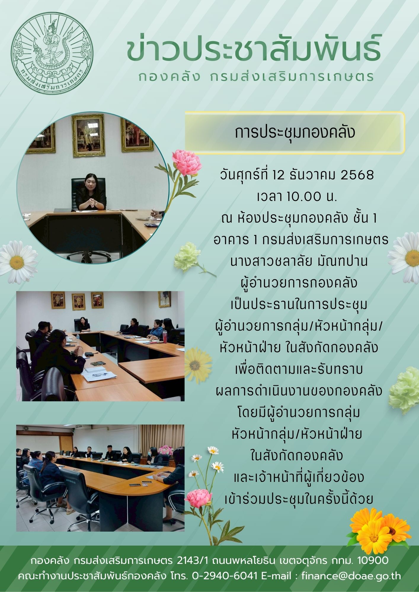 กองคลัง (กลุ่มงบประมาณ) ขอแจ้งเรื่อง ปรับเป้าหมายการเบิกจ่ายและการใช้จ่ายงบประมาณรายจ่ายประจำปีงบประมาณ พ.ศ. 25693 พฤศจิกายน 2025