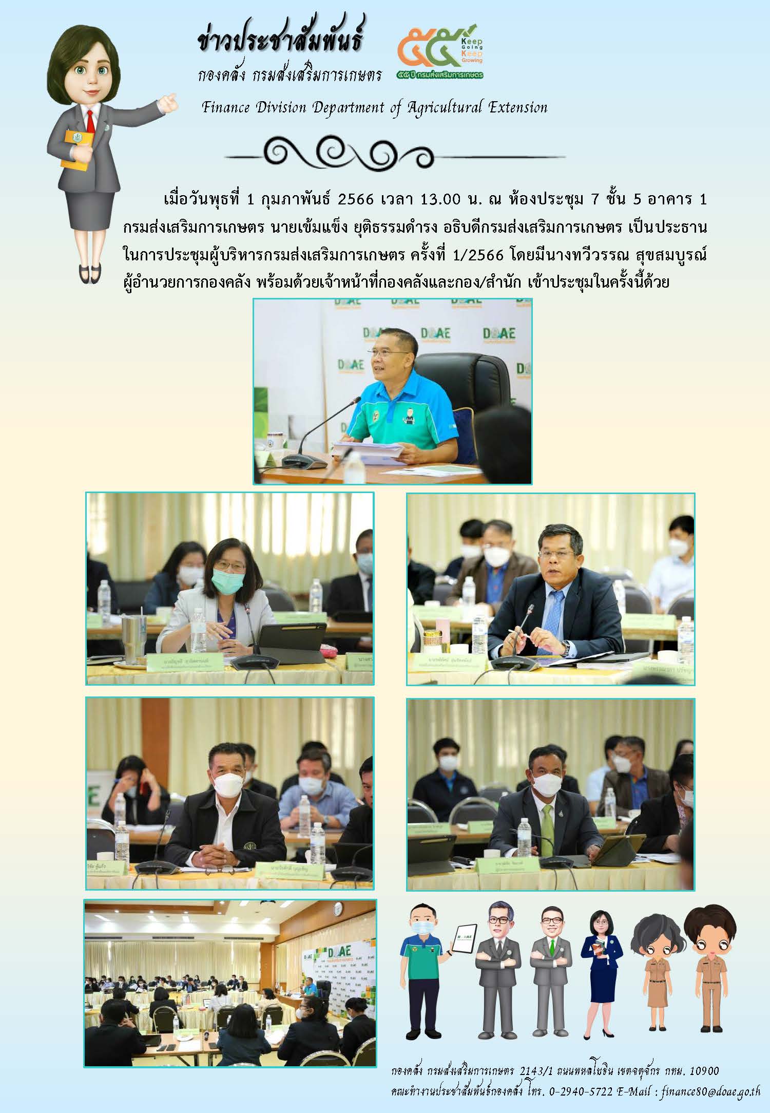 เมื่อวันพุธที่ 1 กุมภาพันธ์ 2566 เวลา 13.00 น. ณ ห้องประชุม 7 ชั้น 5 อาคาร 1 กรมส่งเสริมการเกษตร นายเข้มแข็ง ยุติธรรมดำรง อธิบดีกรมส่งเสริมการเกษตร เป็นประธานในการประชุมผู้บริหารกรมส่งเสริมการเกษตร ครั้งที่ 1/2566 โดยมีนางทวีวรรณ สุขสมบูรณ์ ผู้อำนวยการกองคลัง พร้อมด้วยเจ้าหน้าที่กองคลังและกอง/สำนัก เข้าประชุมในครั้งนี้ด้วย SBOTOP | เว็บแทงบอลเชื่อถือได้ เปิดมานาน